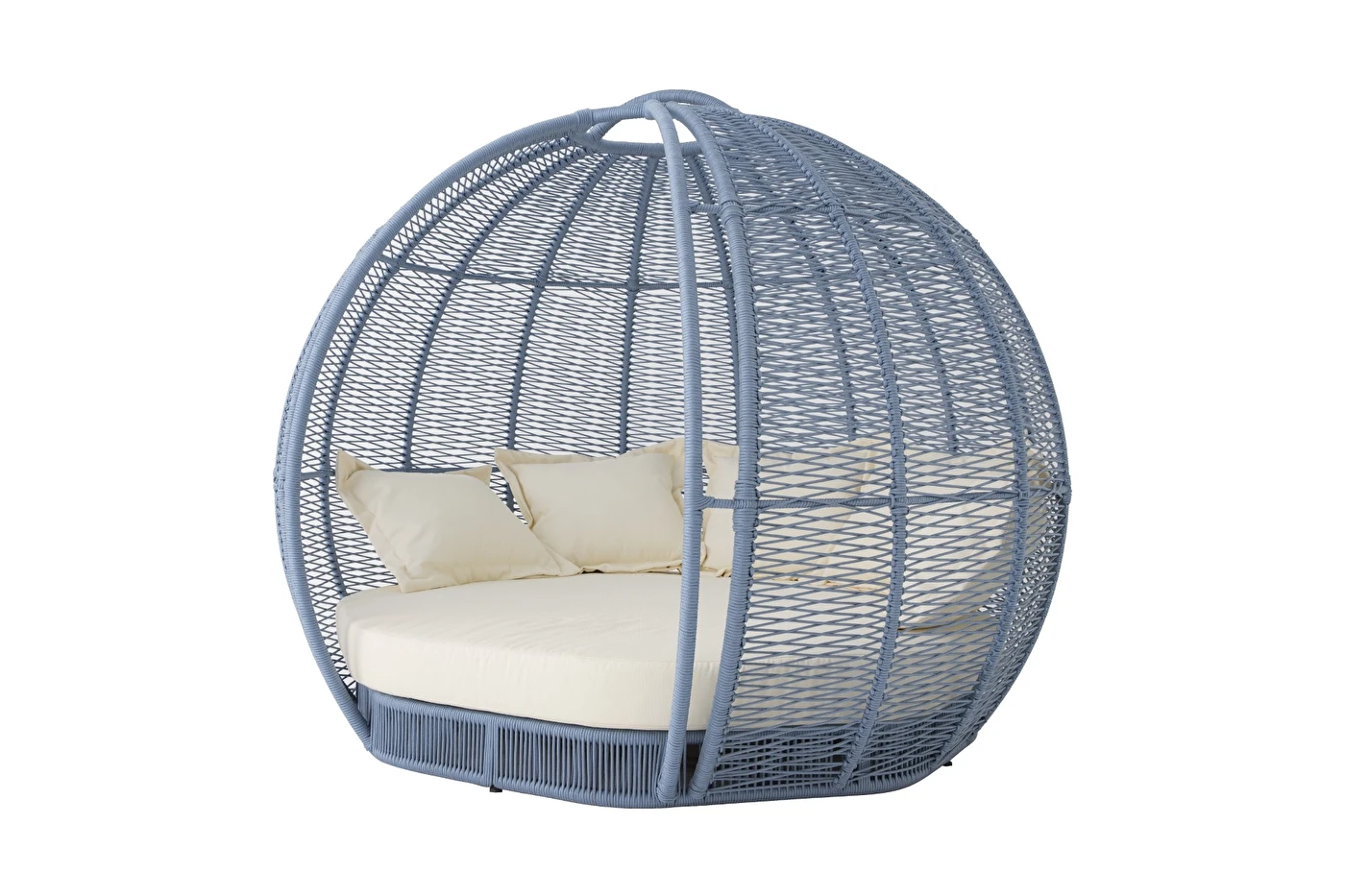 BALANÇO BRISA- Estrutura em trama em corda náutica, assento estofado com almofadas. Disponível na versão pendurada ou de piso.