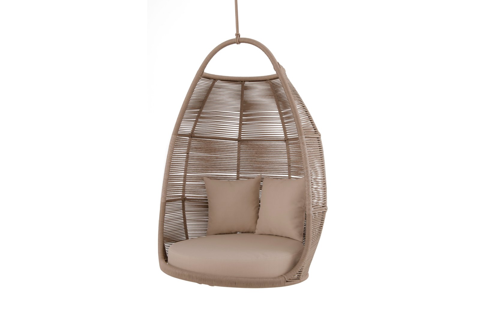 BALANÇO MAYORE- Estrutura em corda náutica, assento estofado. Dimensões: 1,00m largura x 1,09m profundidade x 1,70m altura