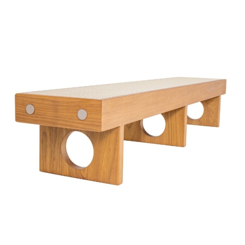 BANCO KATU- Estrutura em madeira, com detalhes na base e assento em palha