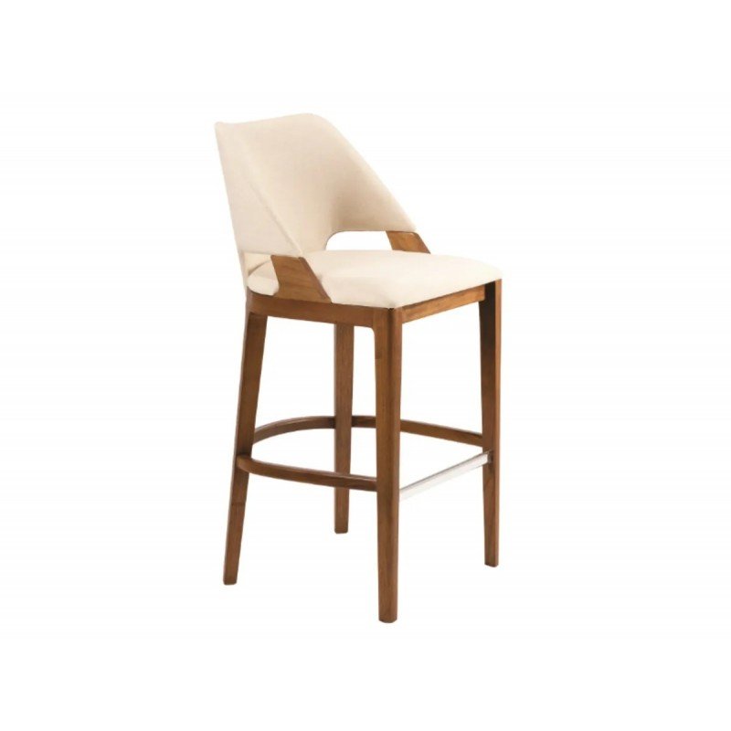 BANQUETA BAR COTTI – Base em madeira, assento e encosto estofados em tecido ou couro.