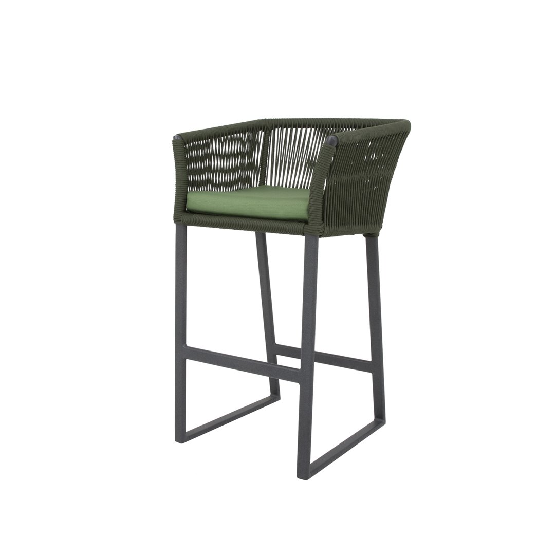 BANQUETA DAFNE – estrutura em alumínio e pintura eletrostática, com um trabalho artesanal nas laterais em corda náutica com proteção UV.