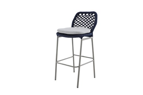 BANQUETA DAKOTA- Estrutura em alumínio, trama em corda náutica em macramê no encosto e trama aberta em corda náutica no assento.