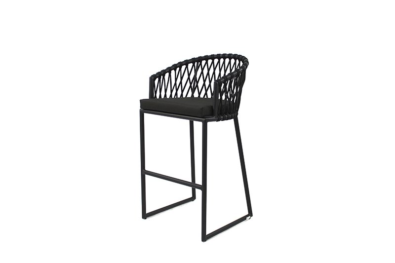 BANQUETA EROS- Estrutura em metal, encosto em trama ouro em corda chata, corda náutica ou tricotada.
