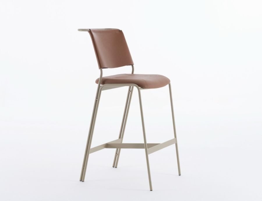 BANQUETA SOA- Base em metal, encosto e assento estofados.