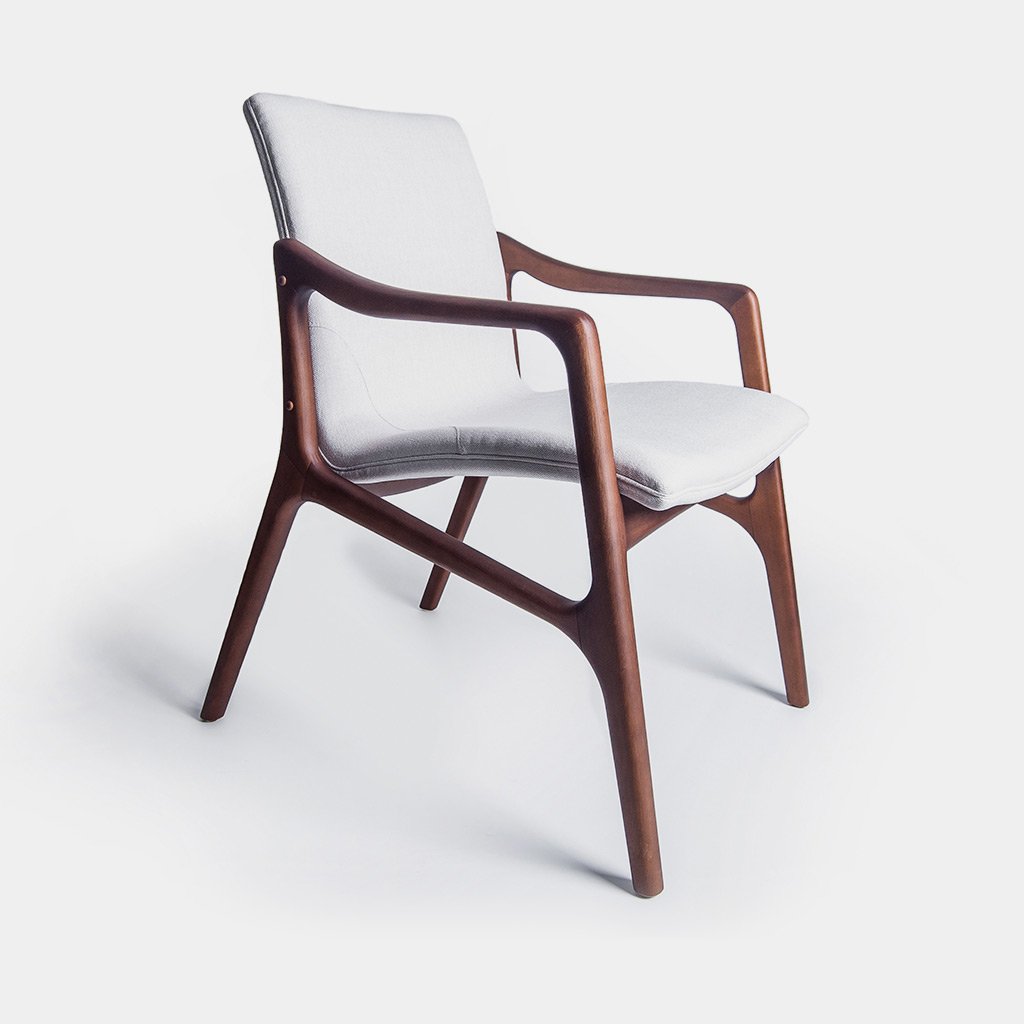 CADEIRA BORÁ COM BRAÇO- estrutura em madeira, assento e encosto em estofado.