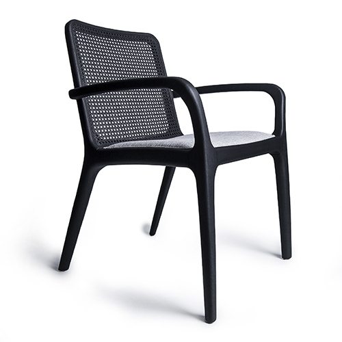 CADEIRA BOW COM BRAÇO- estrutura em madeira maciça, assento estofado e encosto estofado ou em palha.