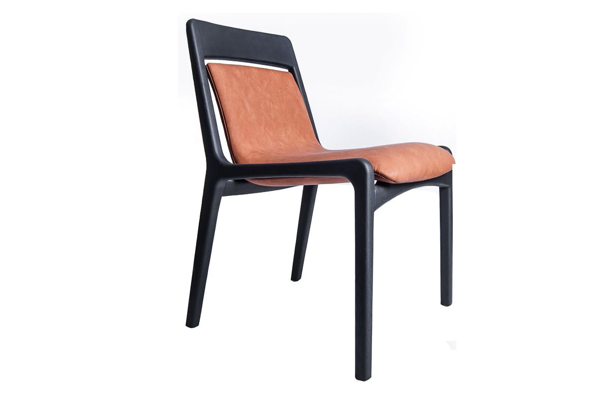 CADEIRA FENDA- estrutura em madeira, assento e encosto estofados.