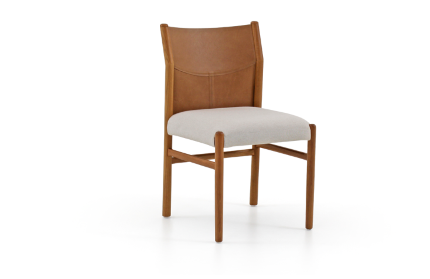 CADEIRA FENDI- Estrutura em madeira, assento em estofado e encosto em couro natural.