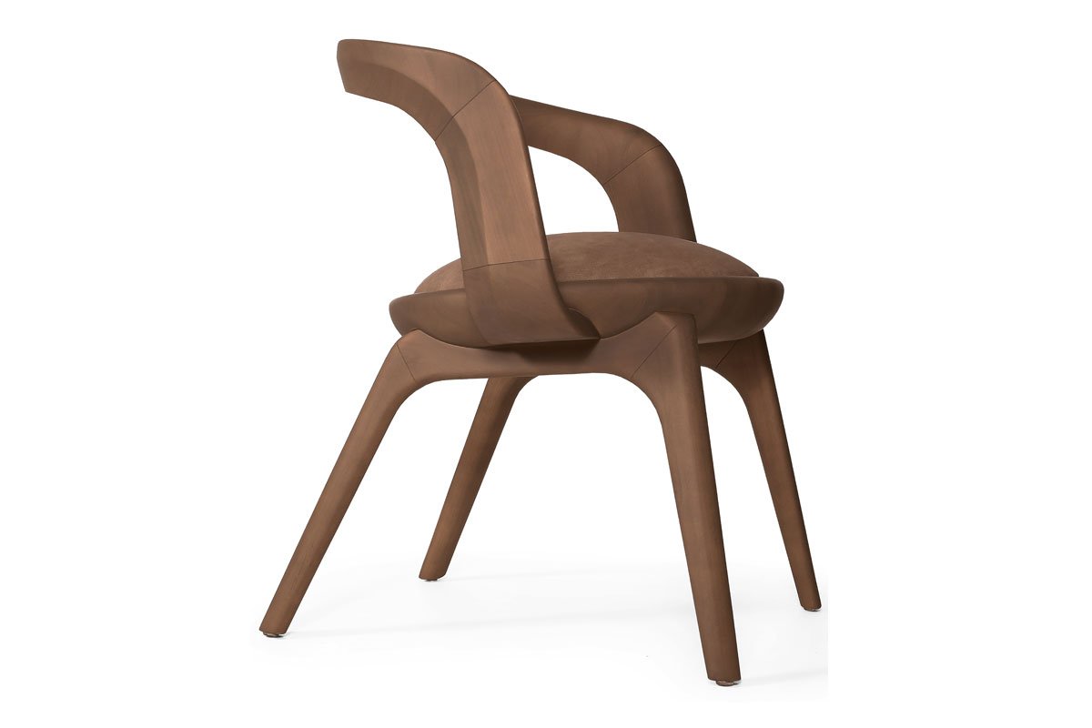 CADEIRA ÓRBITA – estrutura em madeira, assento estofado ou em palha, encosto em madeira.
