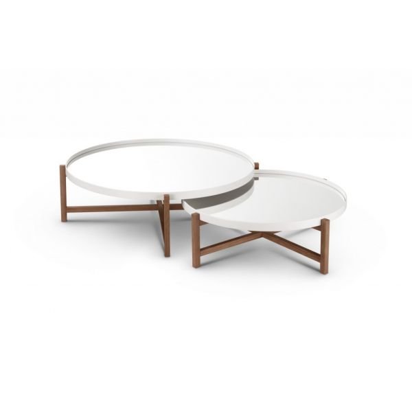 MESA DE CENTRO GALA- Base em nogueira, laca metalizada ou fosca. Tampo em carvalho ou walnut fosco ou brilhoso.