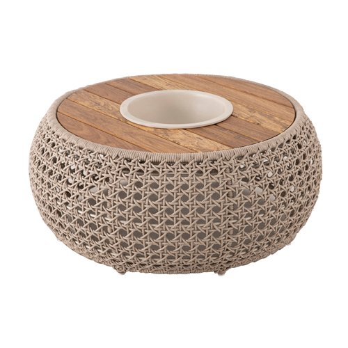 MESA DE CENTRO IBIZA- Estrutura em trama de corda náutica e tampo em madeira cumaru ou freijó.Acompanha champanheira.