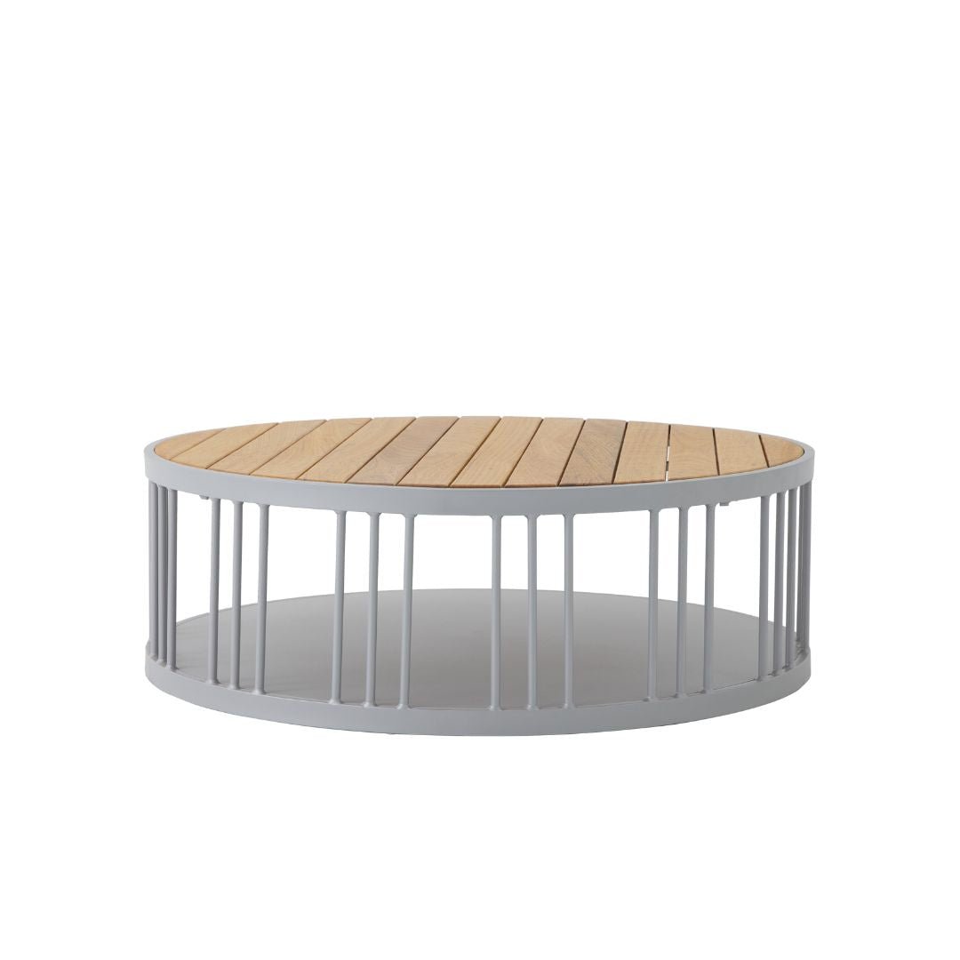 MESA DE CENTRO LOS ANGELES- Estrutura em aluminio e madeira, tampo liso na parte inferior e madeira freijó ripada na parte superior.