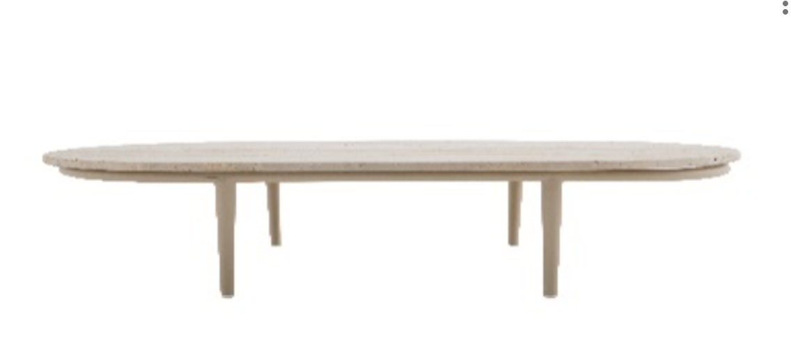 MESA DE CENTRO PENELOPE- Estrutura em alumínio, tampo em mármore travertino bruto.