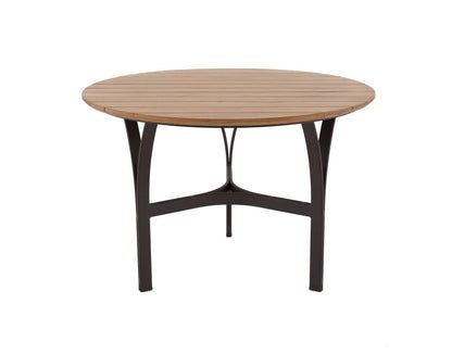 MESA DE JANTAR LAPA- Estrutura em aluminio, tampo em madeira cumaru ou freijo. Dimensões: 1,20m diametro x 75cm altura