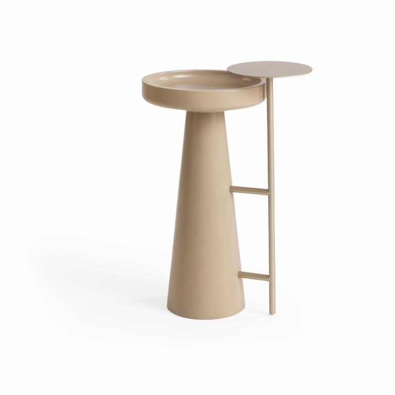 MESA LATERAL CIPÓ – Estrutura em madeira maciça ou MDF laqueado, e haste e tampo em metal.