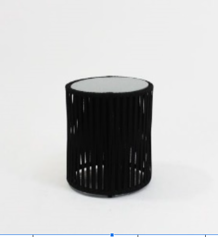 MESA LATERAL FELICCITA- Estrutura em alumínio revestido em trama panamá em corda náutica ou corda chata, tampo em alumínio liso.