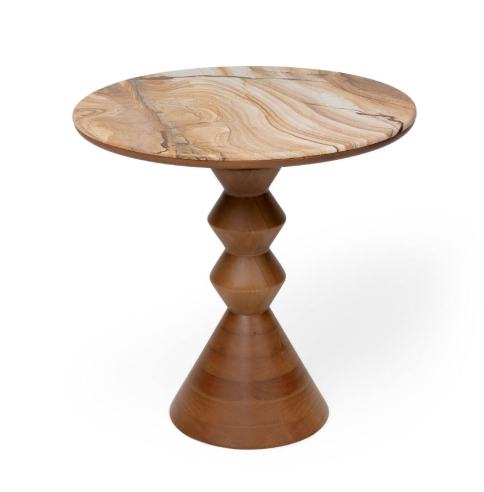 MESA LATERAL MARIA- Base em madeira e tampo em pedra Dimensão abaixo: 80cm diametro x 76cm altura