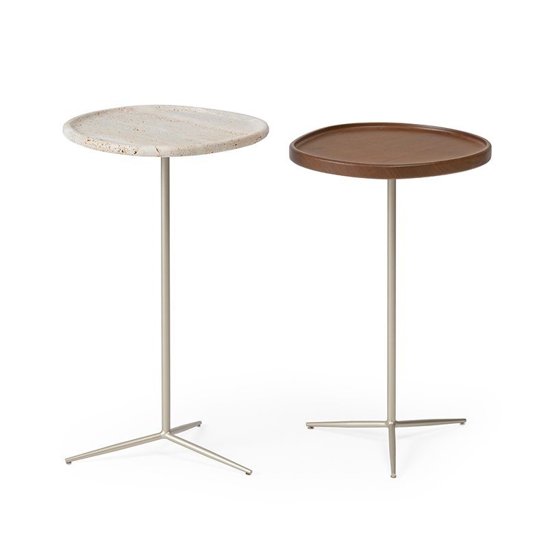 MESA LATERAL TANGO – Base metalica e tampo em laca ou pedra.