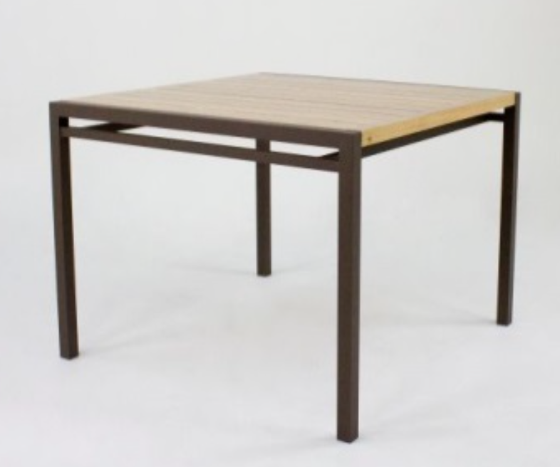 MESA VILLAGE- Estrutura em aluminio, tampo em madeira cumaru ou freijó ripado.