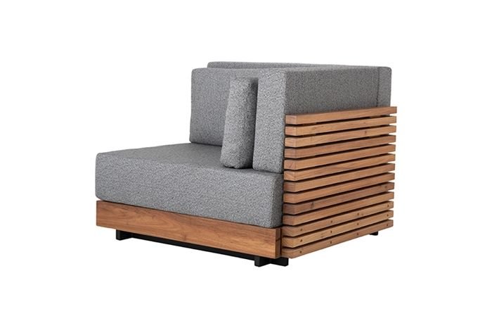 MÓDULO LUNAR- Estrutura em madeira freijó, lateral e encosto em ripas de madeira, disponível com ou sem braço.