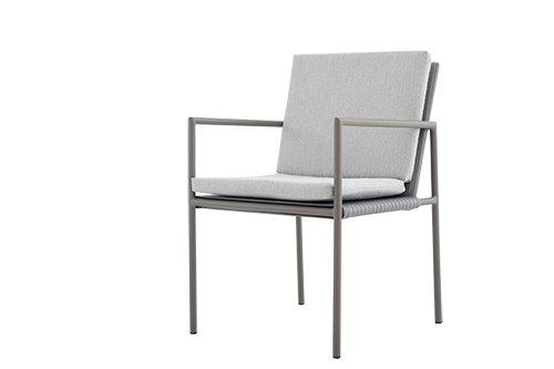POLTRONA CALISTA- Estrutura em aluminio, assento e encosto em trama fechada em tricô nautico acompanhado de almofadas revestidas em tecido outline.