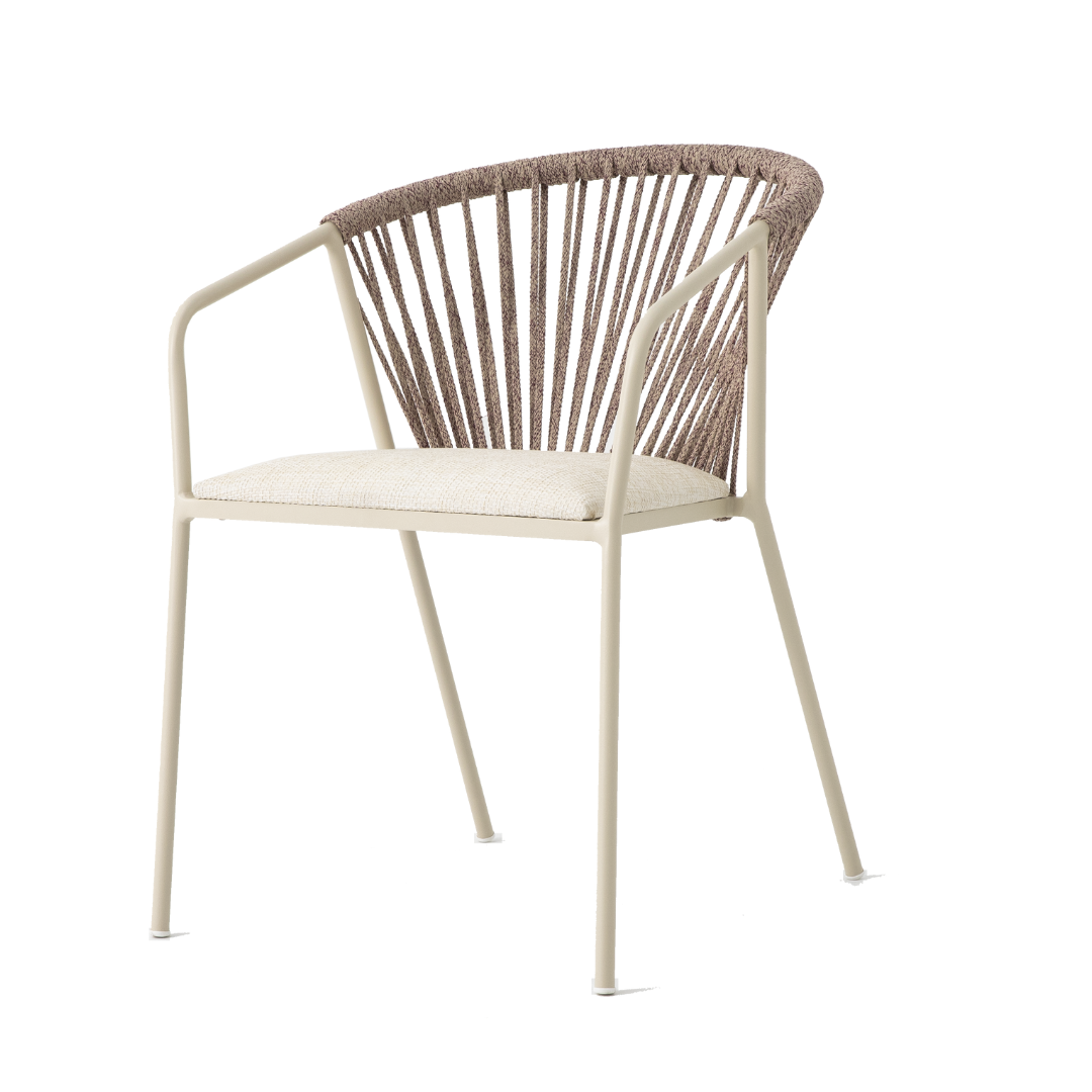 POLTRONA CHICAGO- Estrutura em alumínio e em corda náutica, assento em tecido.