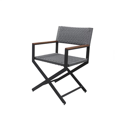 POLTRONA DIRETOR JANTAR- Estrutura em alumínio, braço em madeira freijó ou cumaru, assento e encosto em tela sling ou corda nautica.