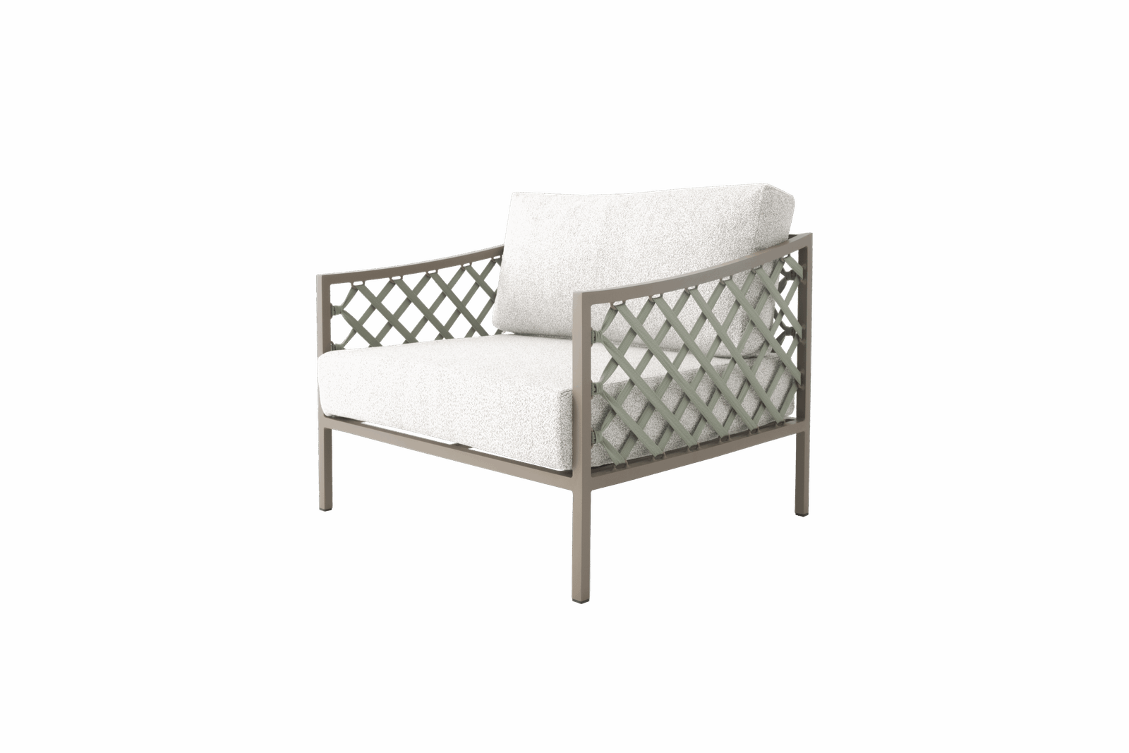 POLTRONA GENOVA- Estrutura em alumínio, laterais em corda náutica, assento e encosto estofados.