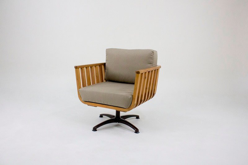 POLTRONA GIRATÓRIA SUNSHINE- Estrutura em madeira e pés em aluminio.