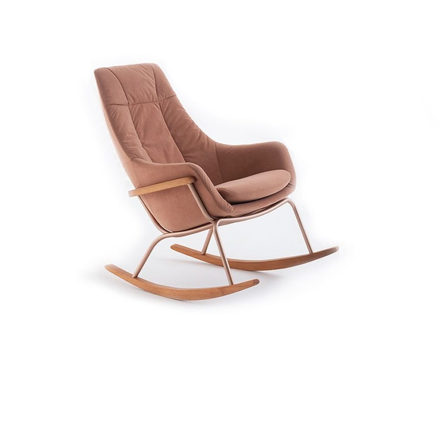 POLTRONA KAUAI PLUS- Base em metal com arco madeira, metal com balanço, 4 pés madeira giratória ou em metal. Assento e encosto estofados.