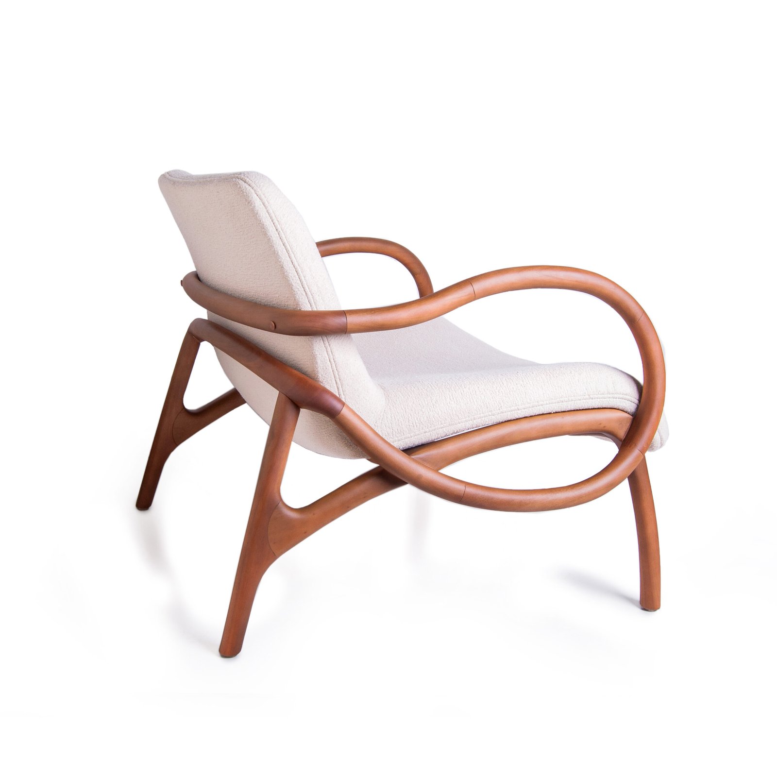 POLTRONA LAÇO- estrutura em madeira, assento e encosto estofados.