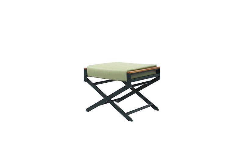 PUFF DIRETOR- Estrutura em alumínio, braço em madeira freijó ou cumaru, assento em tela sling e com almofada.