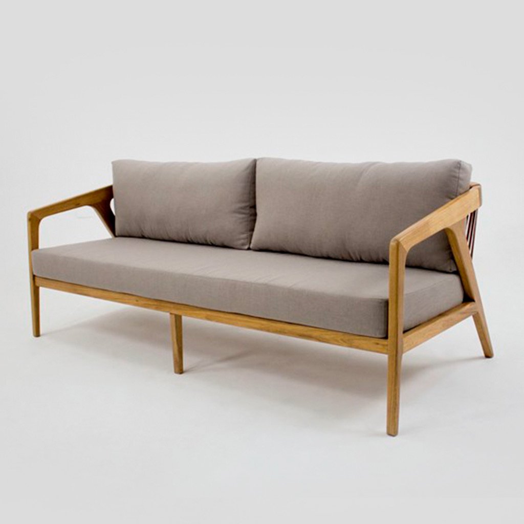 SOFÁ ITAPUÃ- Estrutura em madeira freijó, laterais em trama aberta, encosto e assento em estofado.