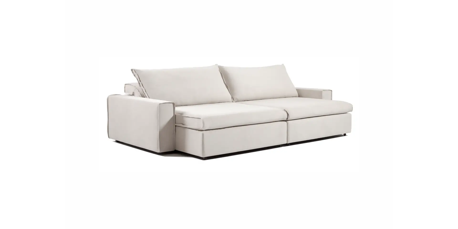 SOFÁ ZEFIRO- Base em polipropileno na cor preta. Assento retrátil com abertura de 50cm, encosto reclinável almofada solta costurada com fole composê. Braço fixo costurado com fole composê.